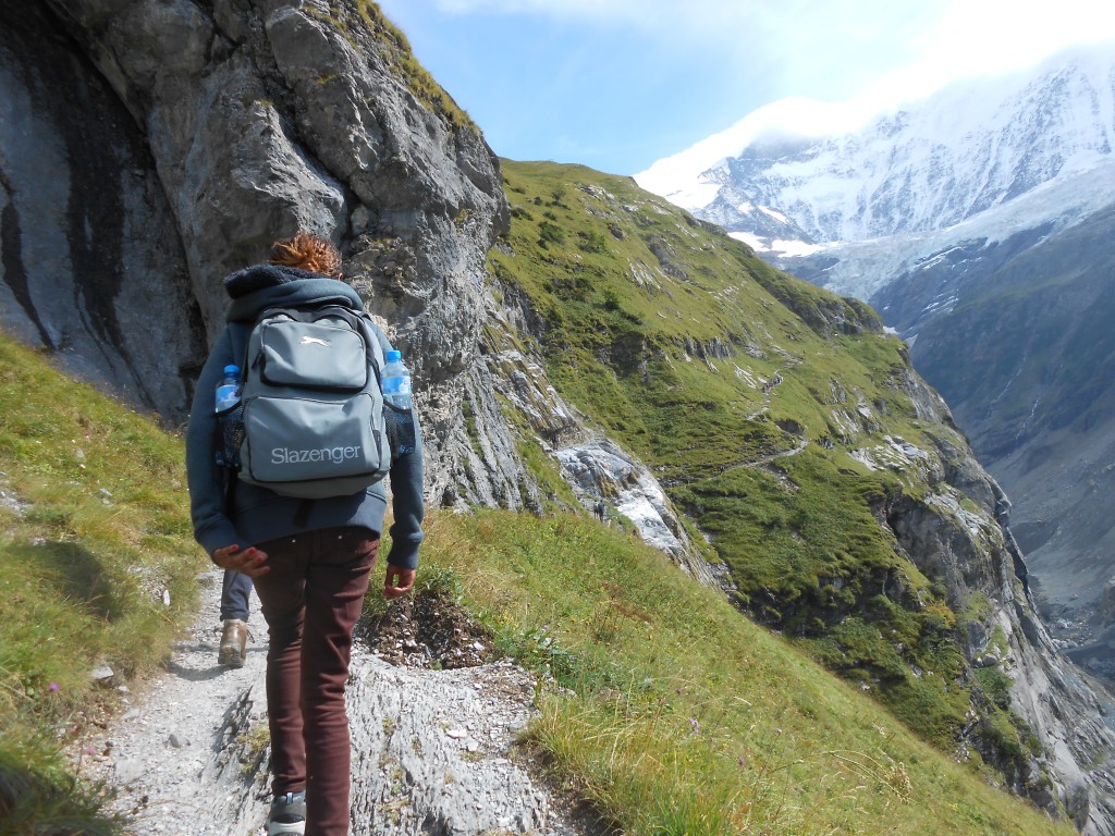 Esther hiking during a field excursion overlooking the retreating Grindelwald Glacier.